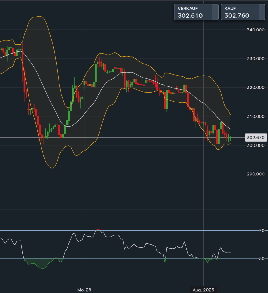Unfortunately, I had to let this one go. It was too risky after it went higher again on Monday to keep the bet online. I bought the shares back at around 322$ which was a stop that I have just set out of the blue. I cashed in about 81€ (~100$), a profit that is way too low for the risk I took. But whatever, profit is profit. Of course the price went lower now again to 300$, but I don’t have enough margin to make another bet this time.