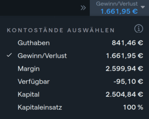 The profit is at around 28% (€2504 – €1950 / €1950). Ups and downs. That is the stock market.
