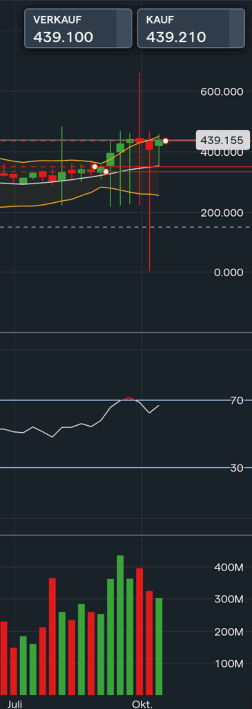 My gosh this stock is really annoying. So many believers think that it really makes sense to buy this stock at 430$. It is an absolutely insane market right now. I put on 7 more short sales and maxed out my margin to benefit from the crash that is obvious to happen here and just a matter or more or hopefully less time.