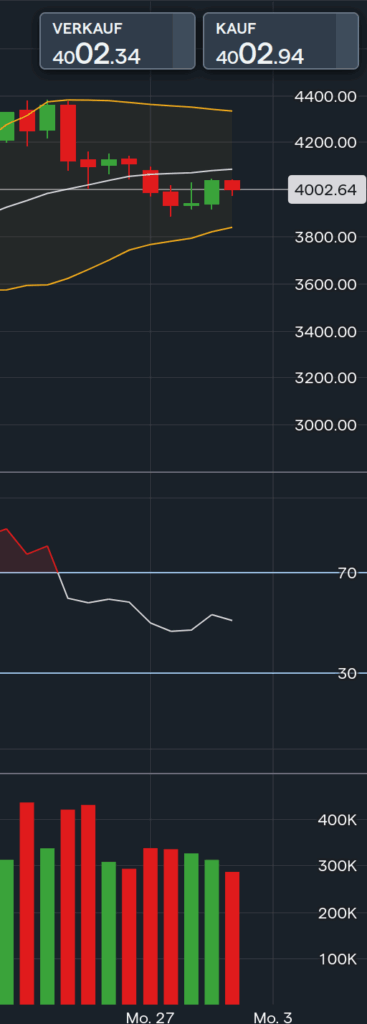 I am still waiting to find a good entry price. $4000 seemed good and I canceled my $3500 long order. This got me some more free powder to make the other bets. Now I have no free margin to take a bet. But soon I have to take a position here, because I think the general direction is up.