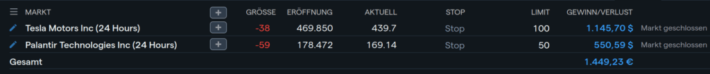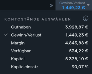 The profit is at around 175% now (€5378 – €1950 / €1950). So i took the losses and got a tax-return from the profits that I took before. After that I went all-in again and voilà… 100% more profit than last week.