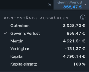The profit is at around 145% now (€4790 – €1950 / €1950). Meme Stocks are fighting back.