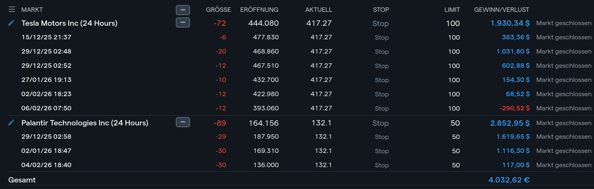 So here are the numbers of week 32. For transparency I display all my trades now. All of them are open. Closed trades are not displayed here. It takes more work to do that, but I don’t trade much. The Limit is the target price. I still don’t use stop loss as you can see.